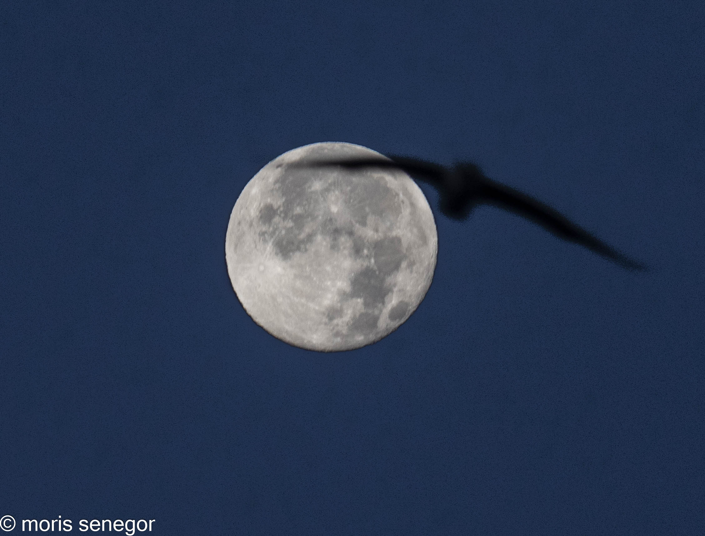 Moon in focus, bird off focus. Not a pleasant photo.