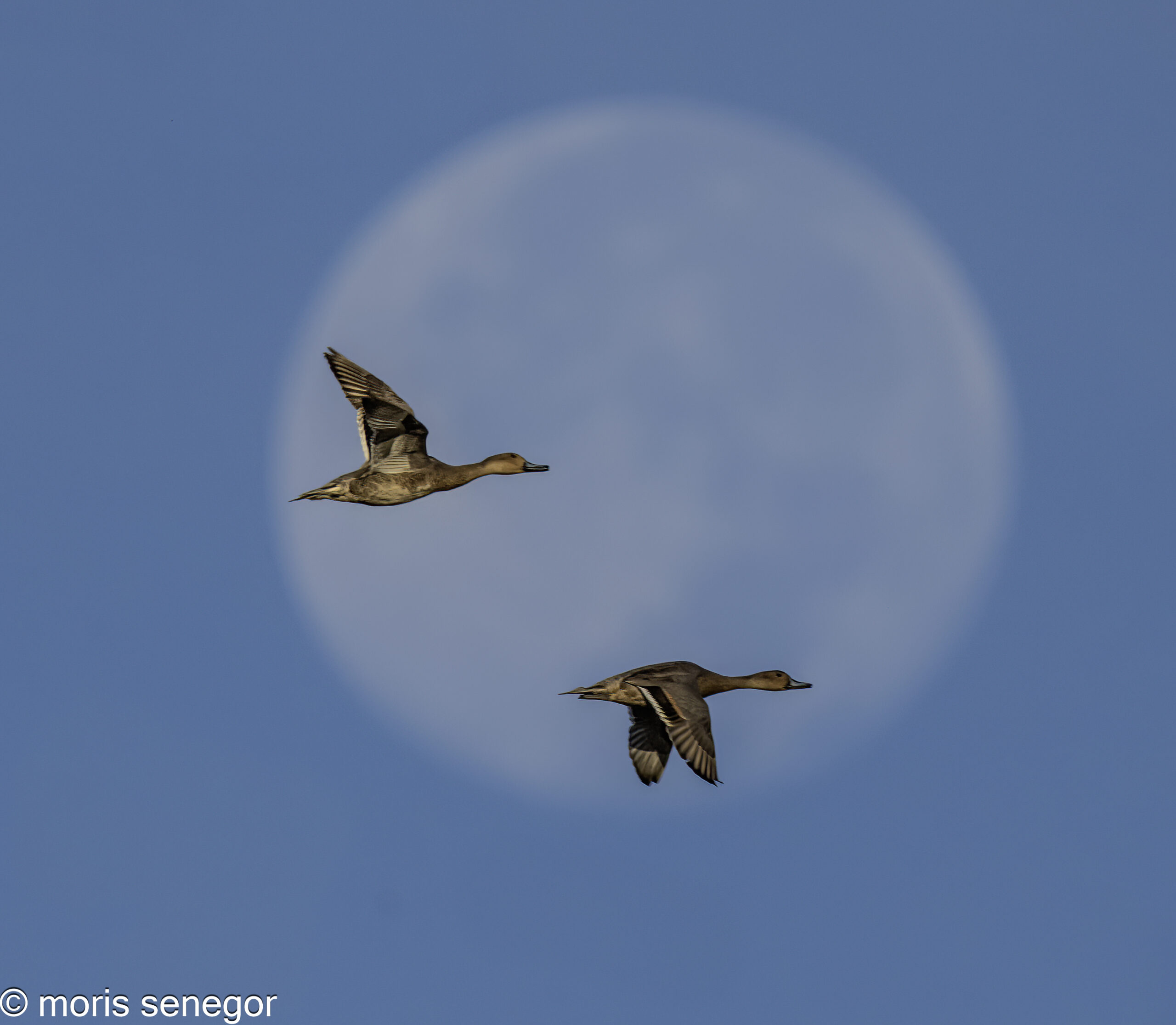 Ducks by full moon.