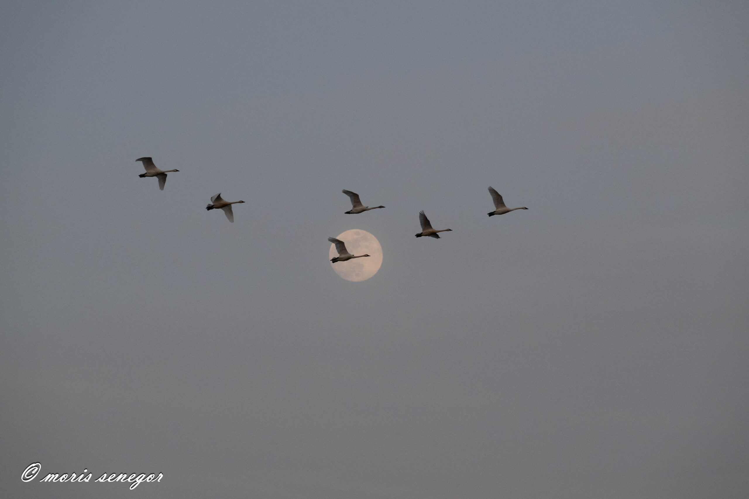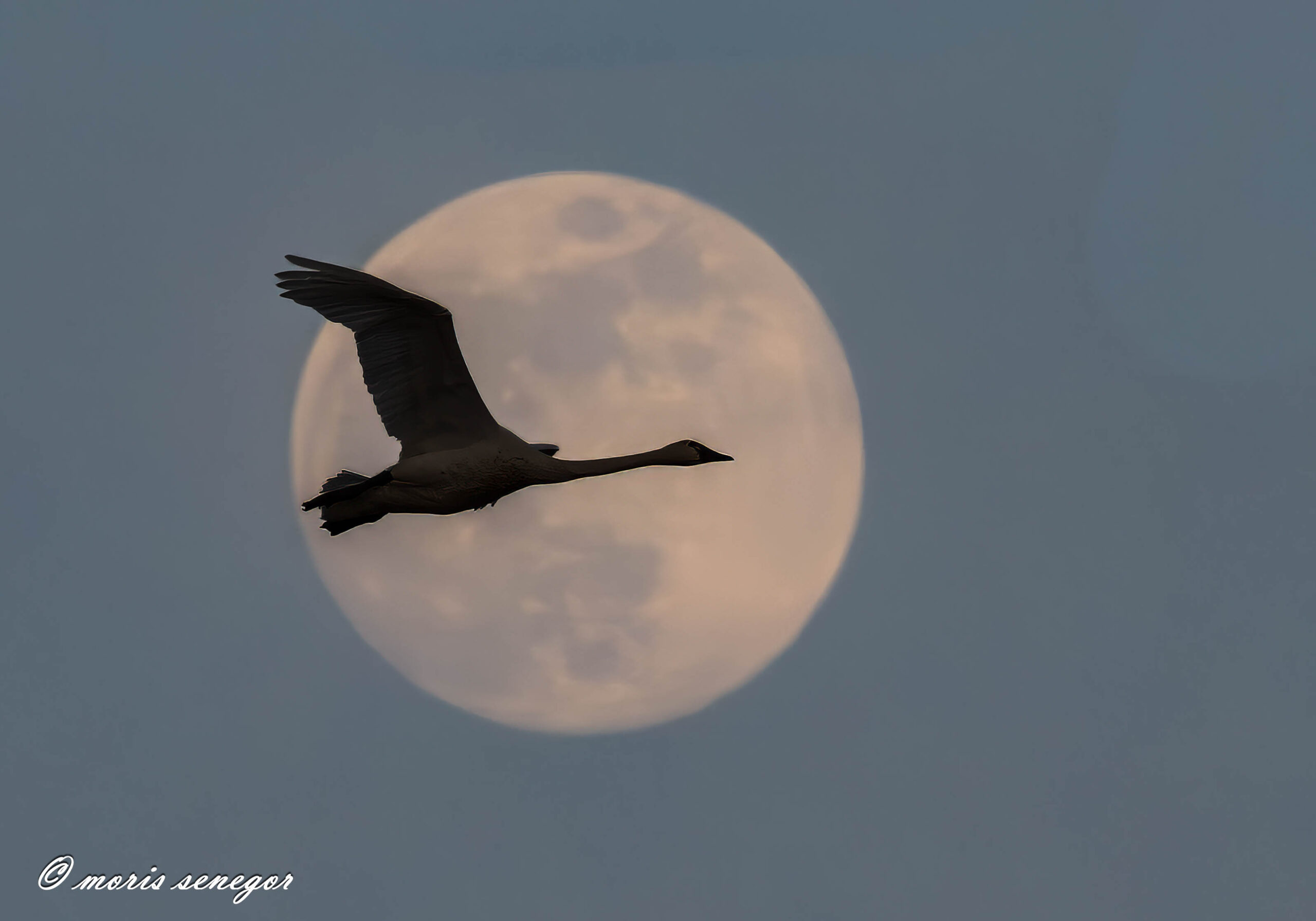 Swan by full moon, final version. Cropped and nearby flock deleted.